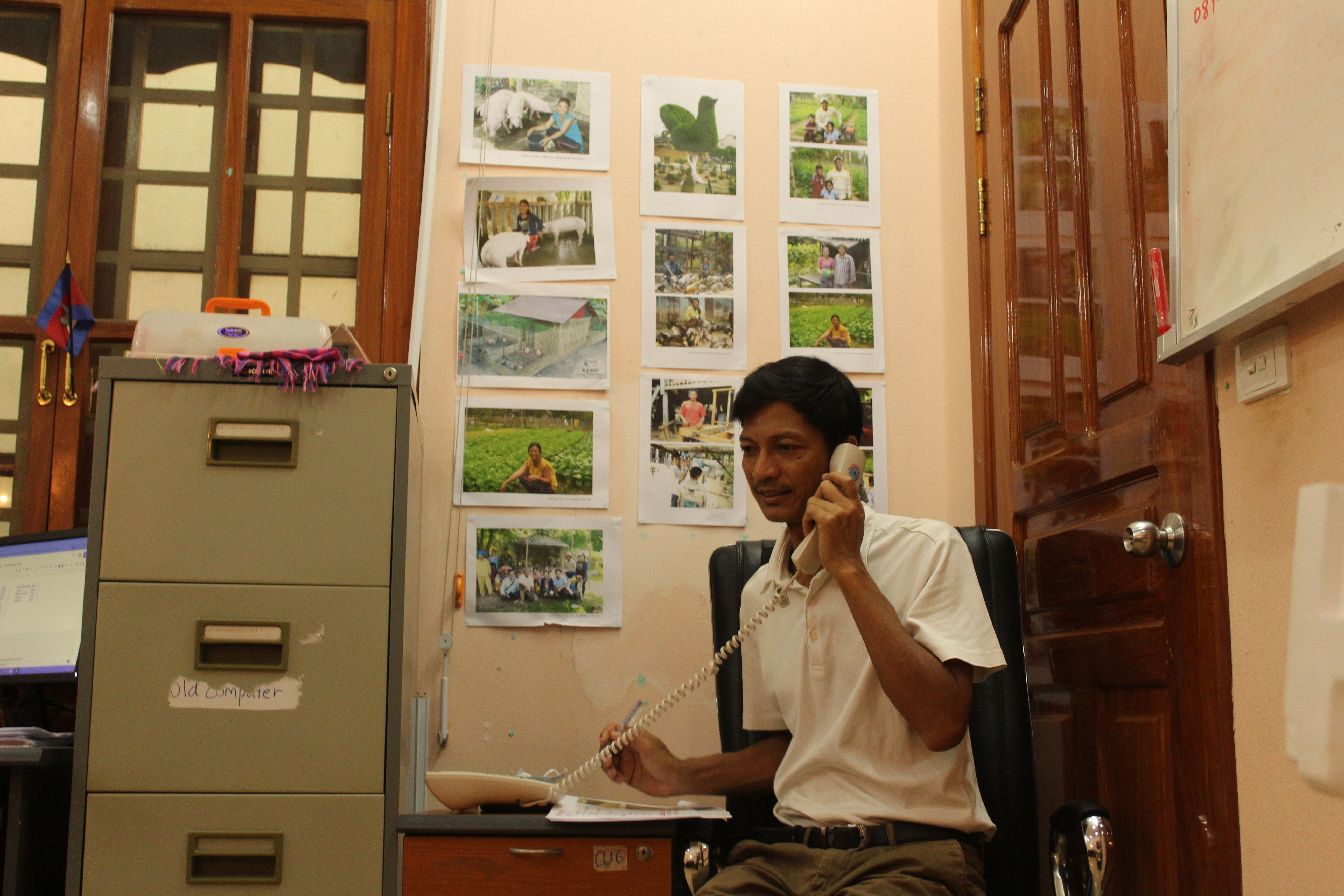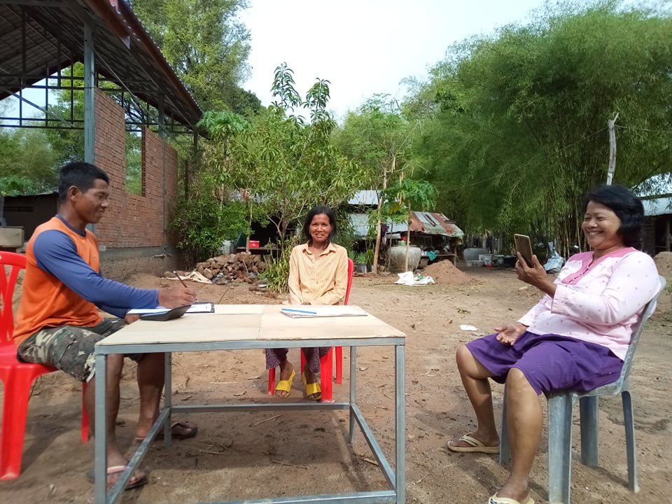 Here, one of volunteers is counselling two village entrepreneurs, presenting them with handouts that our Cambodia office have developed to assist the entrepreneurs. On the phone of one of our volunteers they are viewing an instructional learning video made by Cufa, which we believe can continue to deliver our regular training.